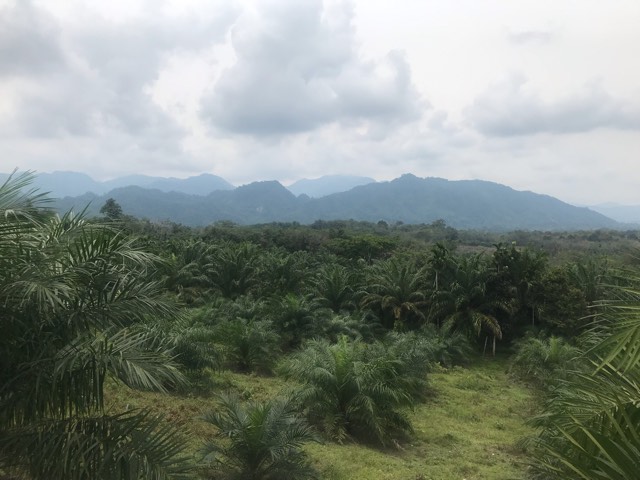 After a well needed lie in on Saturday, we headed out on an adventure. It was a sunny day and so I wanted to go somewhere quiet enough that I could wear a bikini and sunbathe without every man and his dog coming to gawk at me – a common experience here if you dare to show your knee caps. We decided we would head somewhere new, so we drove up the hills towards Batu-Katak. The views on the way were completely astounding, miles of mountains and jungle (and palm oil) as far as we could see. So so many different shades of green that simply don’t show up on a camera.
