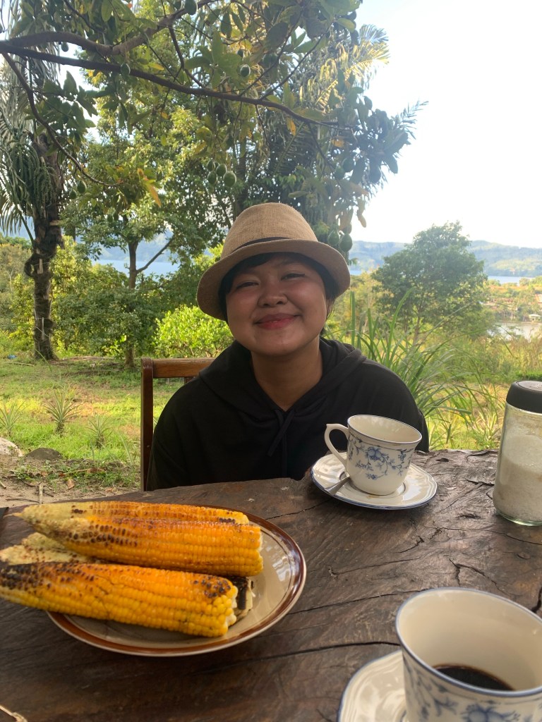 Minggu – remembered the sun cream today! The day was off to an eventful start as we were sitting on the dock outside our hotel making noodles for breakfast when a Jetski approached. Somehow we were persuaded that 9am on a Sunday was the perfect time to try this out! After this and a swim our jet ski friend stuck around. From my basic understanding of Indonesian I could hear my friends agreeing to go somewhere with him later. Sure enough, later in the afternoon he picked us up (two at a time as per motorbike rules) and brought us to what seemed to be a random family’s home way up in the hill with a beautiful view over the lake. From here the random family were summoned to make us coffee while he created a fire and bbqd corn from their land. Following the coffee and corn the family invited us up from the land we were on to their home, where we spent a lovely evening watching the sunset with Ibu and bapak.