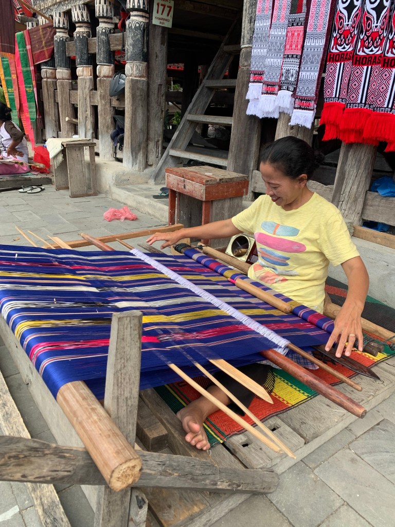 Senin – we had made a plan to drive to a hot spring today and I knew it was a long way so got up early. Of course a swim, jet ski and rice eating had to occur first before we could set off. Eventually we managed to hire our bikes and were on our way! We stopped at a traditional village on the way where we got to see women weaving sarongs by hand. The whole process takes 3 weeks and includes counting out the threads by hand to ensure the pattern is correct. Following this and admiring the incredible Batak houses, we made it to the hot springs, which were indeed hot!